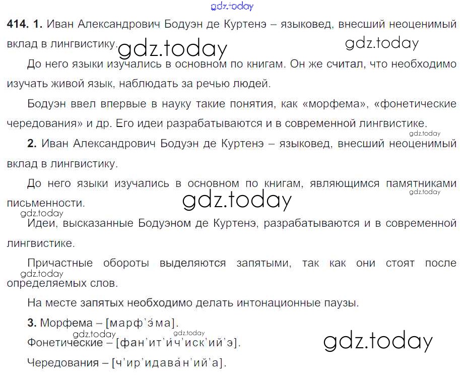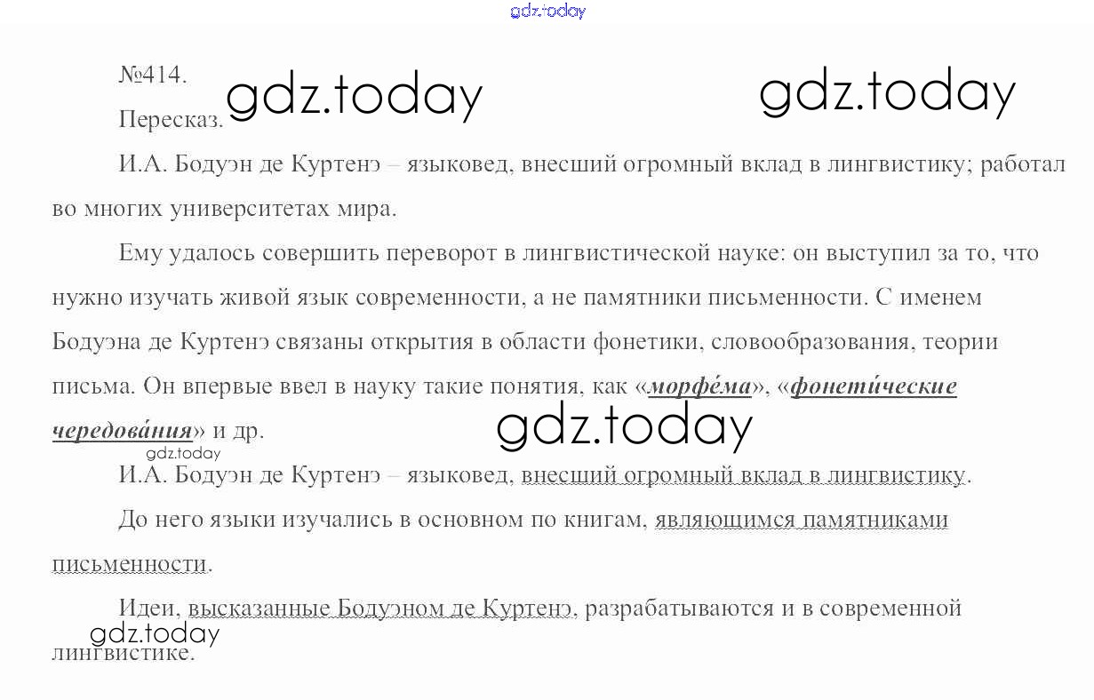 На страницах сайта gdz.today вы найдете учебный и вспомогательный материал, направленный на улучшения знаний школьной программы. ГДЗ - онлайн мир знаний Решение. Упражнения 414 Учебнику по Русскому языку для 6 класса Разумовская, Львова Дрофа, Просвещение Вертикаль 2016, 2022