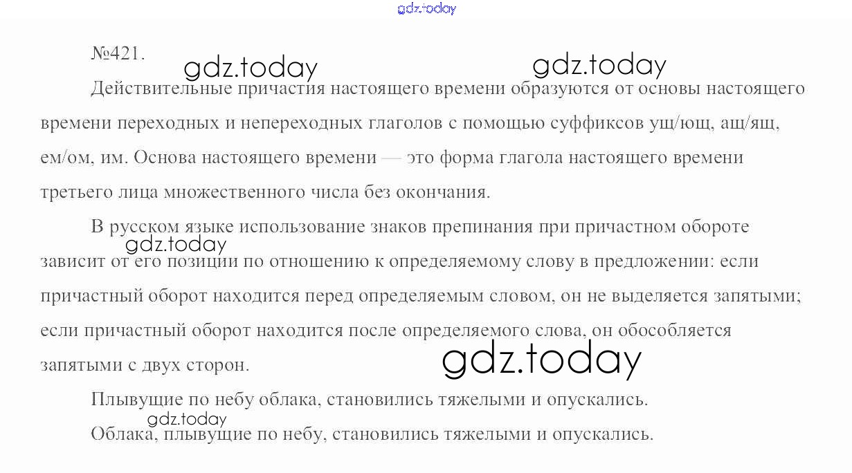 На страницах сайта gdz.today вы найдете учебный и вспомогательный материал, направленный на улучшения знаний школьной программы. ГДЗ - онлайн мир знаний Решение. Упражнения 421 Учебнику по Русскому языку для 6 класса Разумовская, Львова Дрофа, Просвещение Вертикаль 2016, 2022