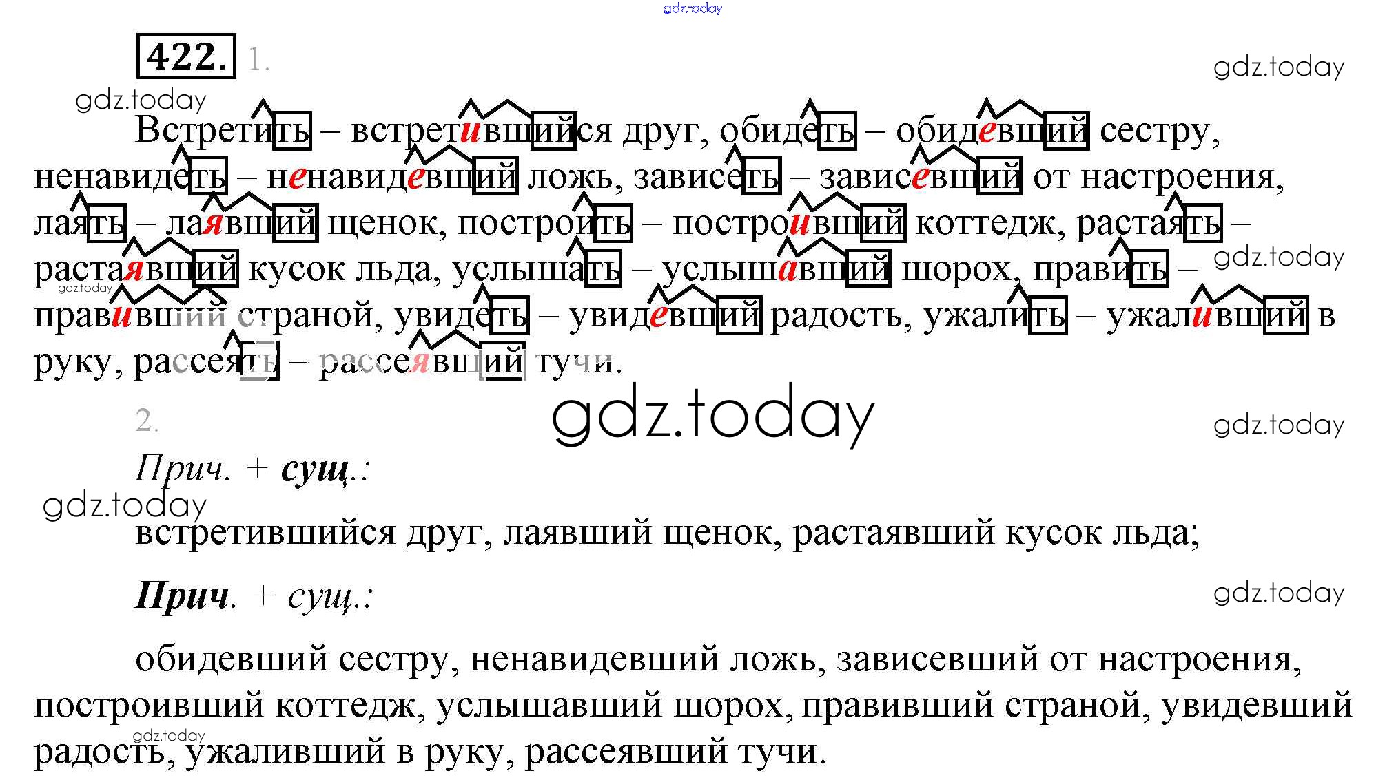 На страницах сайта gdz.today вы найдете учебный и вспомогательный материал, направленный на улучшения знаний школьной программы. ГДЗ - онлайн мир знаний Решение. Упражнения 422 Учебнику по Русскому языку для 6 класса Разумовская, Львова Дрофа, Просвещение Вертикаль 2016, 2022