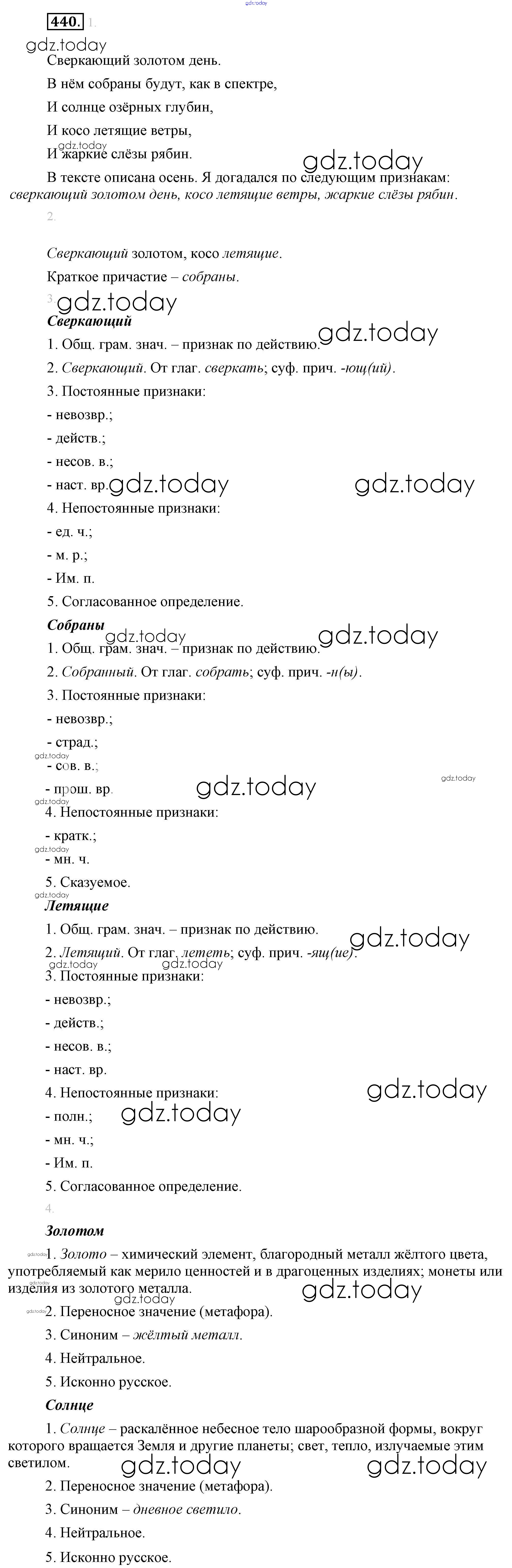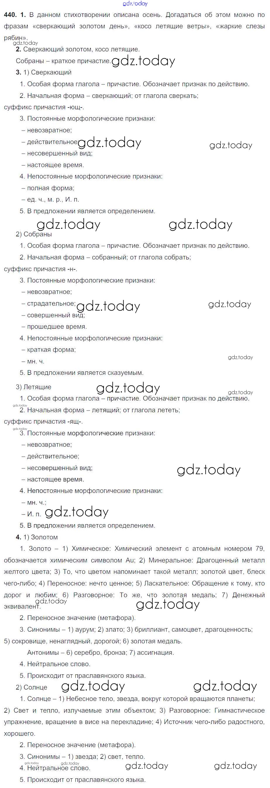 Ответы к Решение. Упражнения 440 Учебнику по Русскому языку для 6 класса Разумовская, Львова Дрофа, Просвещение Вертикаль 2016, 2022