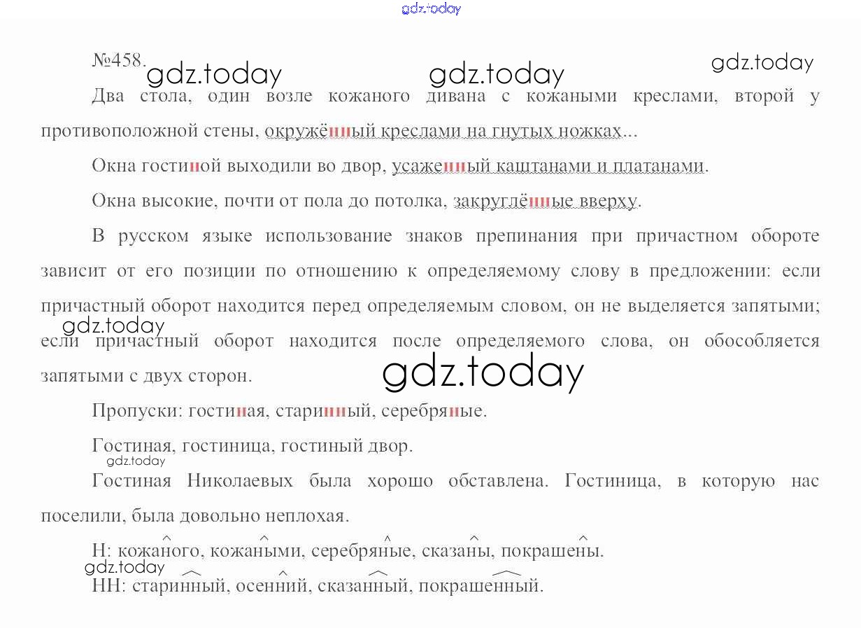 Ответы к Решение. Упражнения 458 Учебнику по Русскому языку для 6 класса Разумовская, Львова Дрофа, Просвещение Вертикаль 2016, 2022