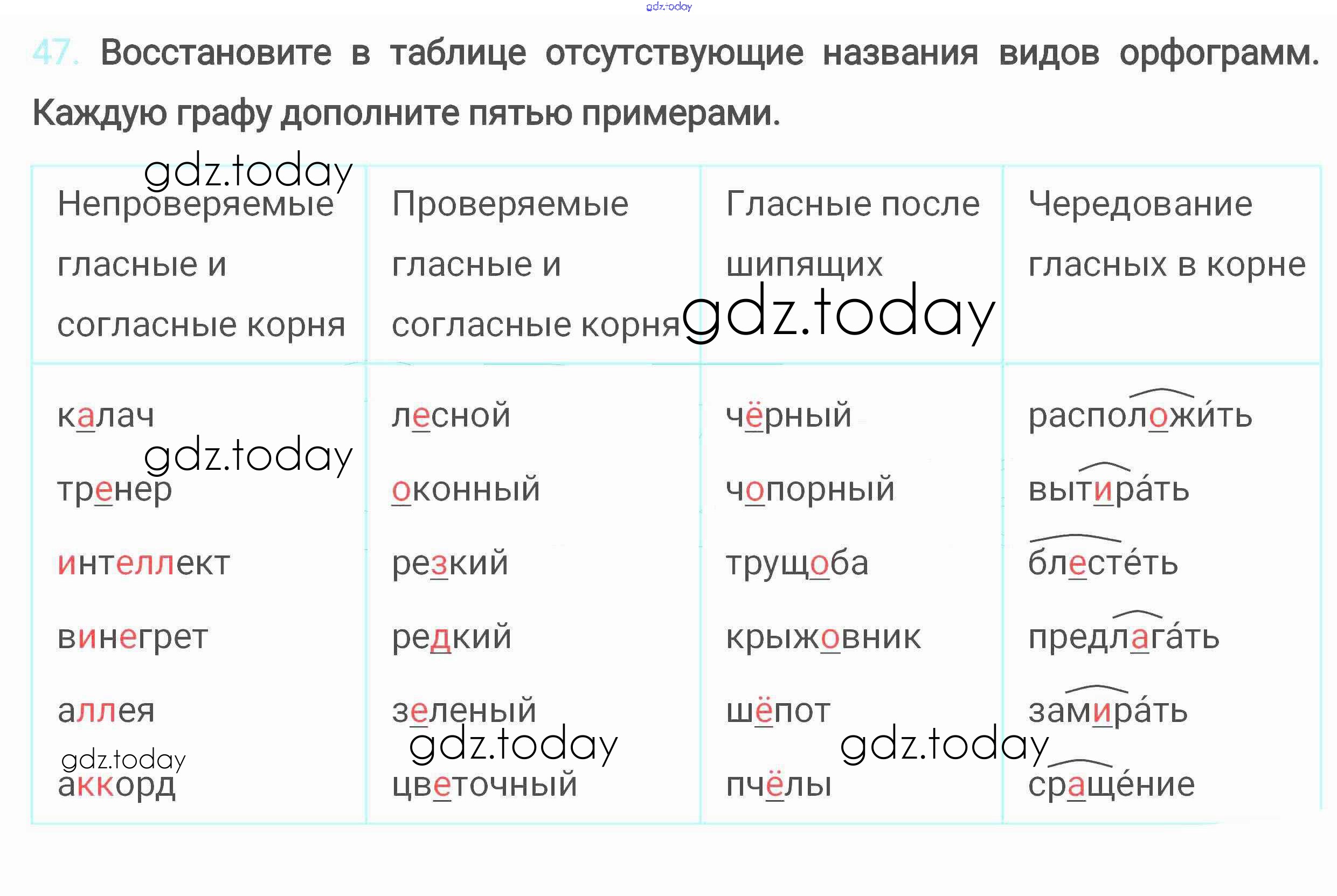 На страницах сайта gdz.today вы найдете учебный и вспомогательный материал, направленный на улучшения знаний школьной программы. ГДЗ - онлайн мир знаний Решение. Упражнения 47 Учебнику по Русскому языку для 6 класса Разумовская, Львова Дрофа, Просвещение Вертикаль 2016, 2022
