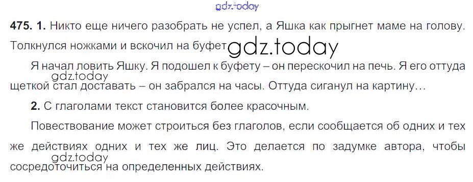На страницах сайта gdz.today вы найдете учебный и вспомогательный материал, направленный на улучшения знаний школьной программы. ГДЗ - онлайн мир знаний Решение. Упражнения 475 Учебнику по Русскому языку для 6 класса Разумовская, Львова Дрофа, Просвещение Вертикаль 2016, 2022