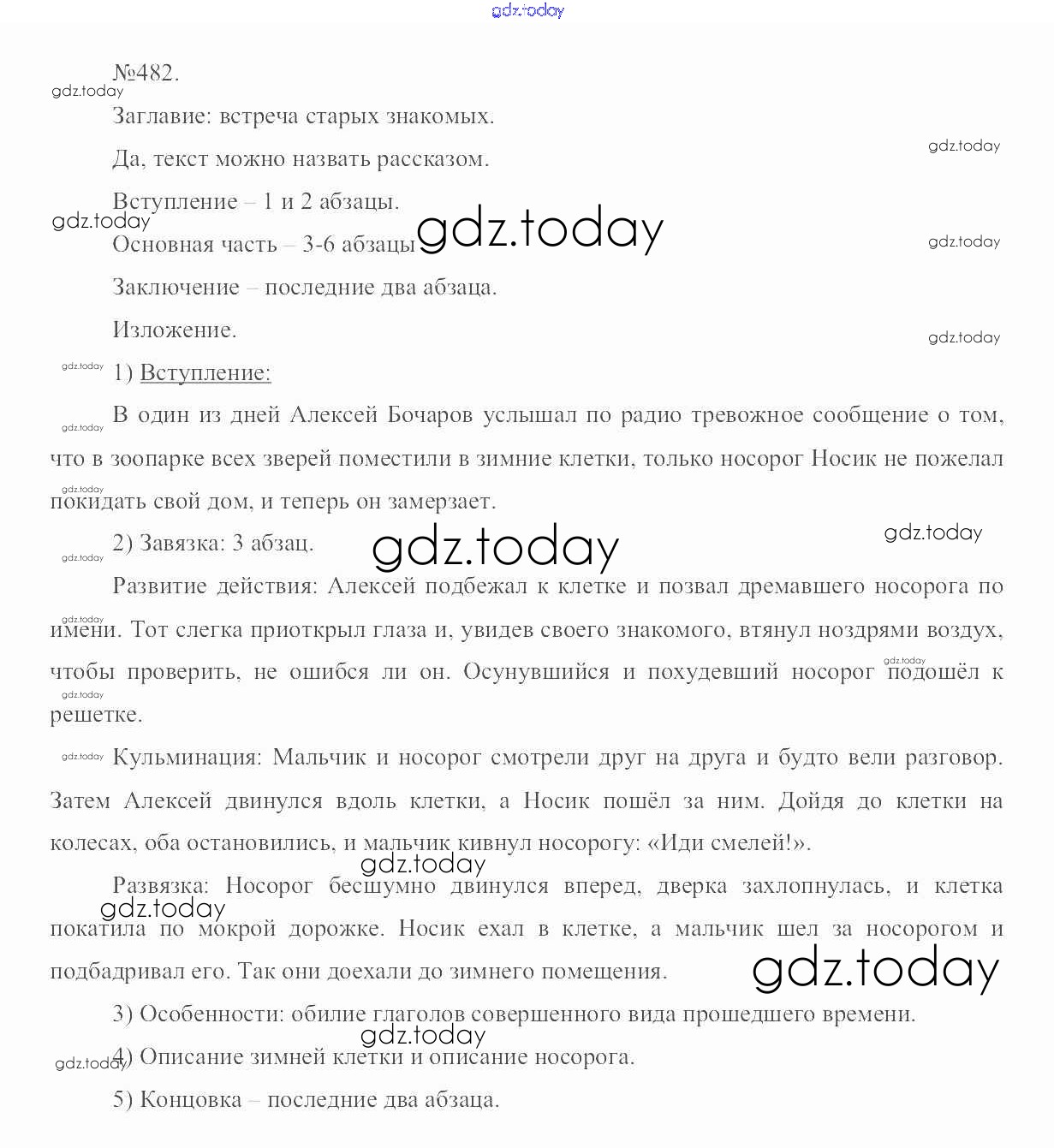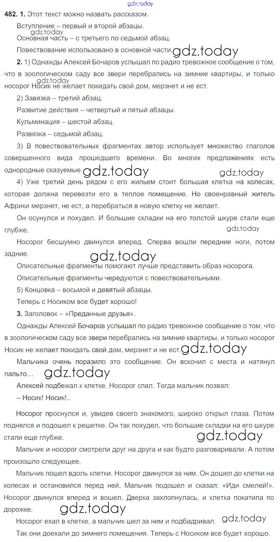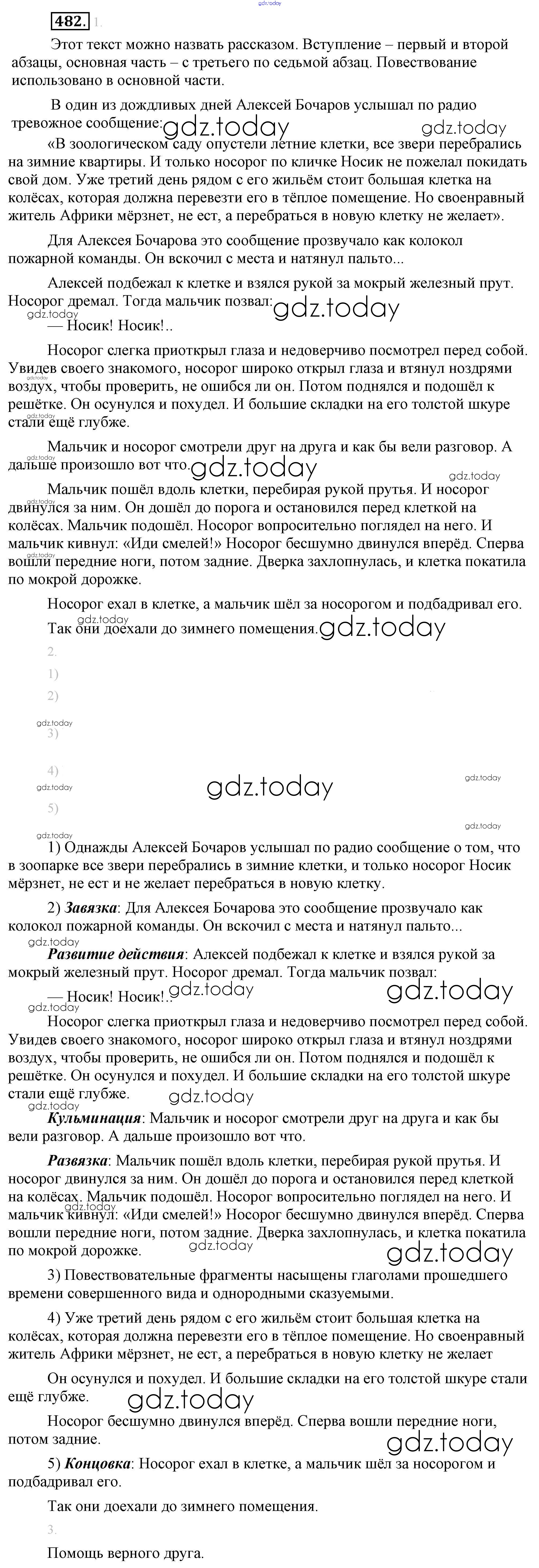 Ответы к Решение. Упражнения 482 Учебнику по Русскому языку для 6 класса Разумовская, Львова Дрофа, Просвещение Вертикаль 2016, 2022