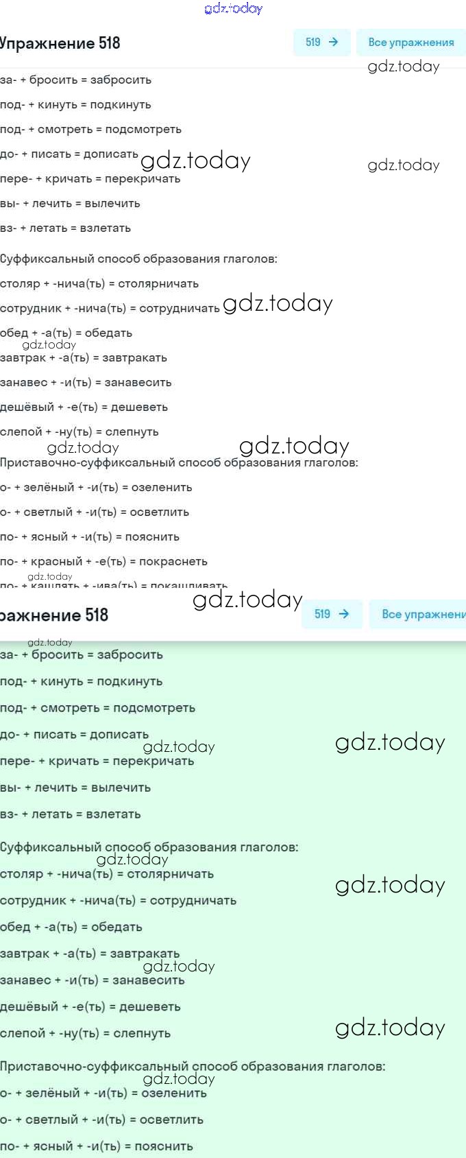 На страницах сайта gdz.today вы найдете учебный и вспомогательный материал, направленный на улучшения знаний школьной программы. ГДЗ - онлайн мир знаний Решение. Упражнения 518 Учебнику по Русскому языку для 6 класса Разумовская, Львова Дрофа, Просвещение Вертикаль 2016, 2022