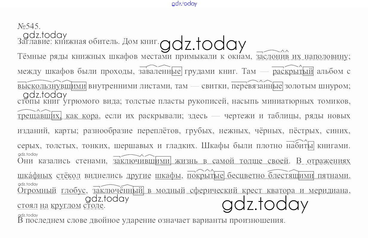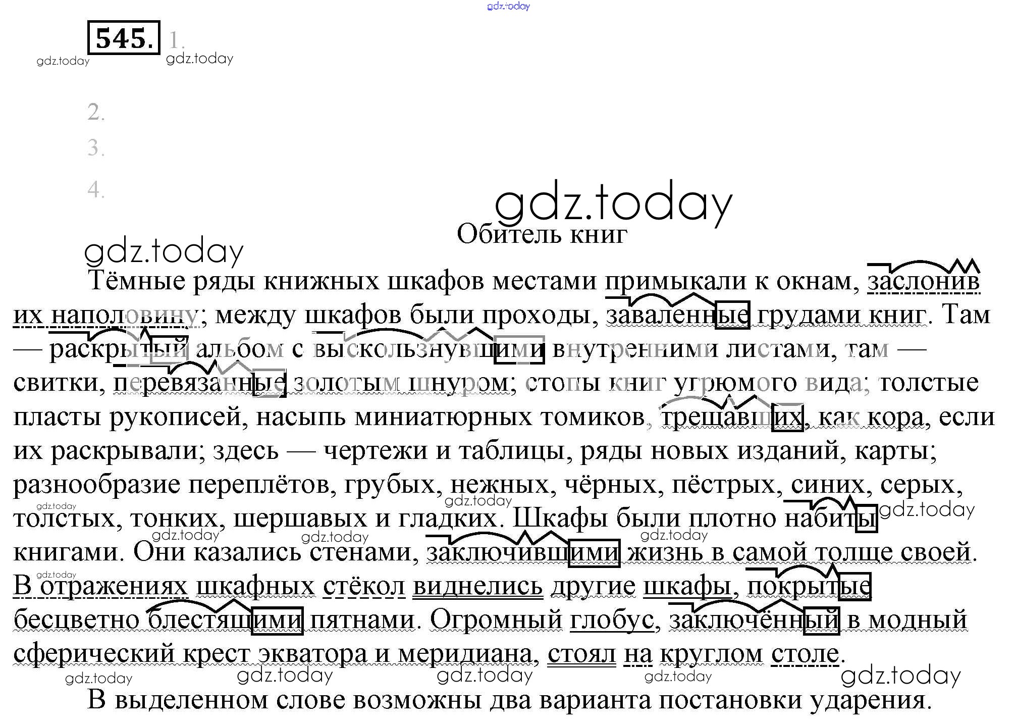 На страницах сайта gdz.today вы найдете учебный и вспомогательный материал, направленный на улучшения знаний школьной программы. ГДЗ - онлайн мир знаний Решение. Упражнения 545 Учебнику по Русскому языку для 6 класса Разумовская, Львова Дрофа, Просвещение Вертикаль 2016, 2022