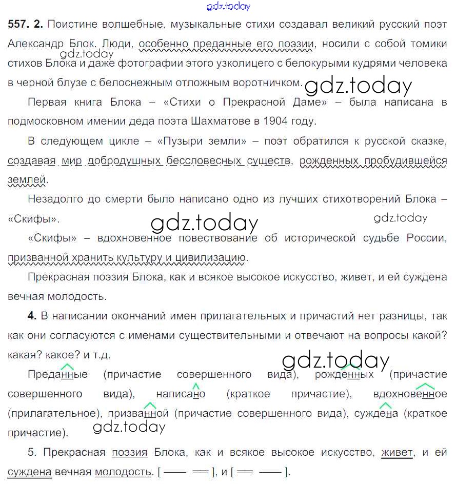 Ответы к Решение. Упражнения 557 Учебнику по Русскому языку для 6 класса Разумовская, Львова Дрофа, Просвещение Вертикаль 2016, 2022