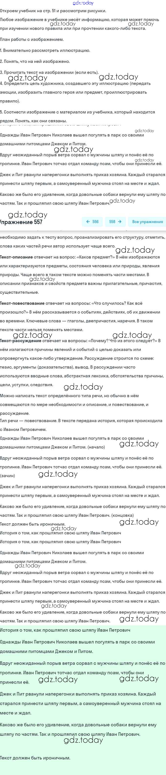 На страницах сайта gdz.today вы найдете учебный и вспомогательный материал, направленный на улучшения знаний школьной программы. ГДЗ - онлайн мир знаний Решение. Упражнения 557 Учебнику по Русскому языку для 6 класса Разумовская, Львова Дрофа, Просвещение Вертикаль 2016, 2022