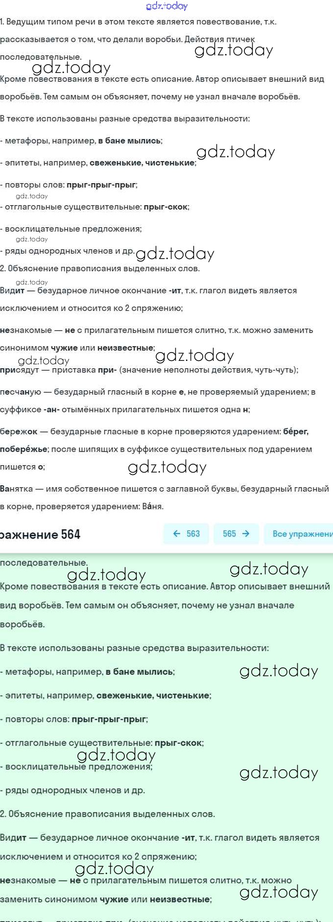 На страницах сайта gdz.today вы найдете учебный и вспомогательный материал, направленный на улучшения знаний школьной программы. ГДЗ - онлайн мир знаний Решение. Упражнения 564 Учебнику по Русскому языку для 6 класса Разумовская, Львова Дрофа, Просвещение Вертикаль 2016, 2022