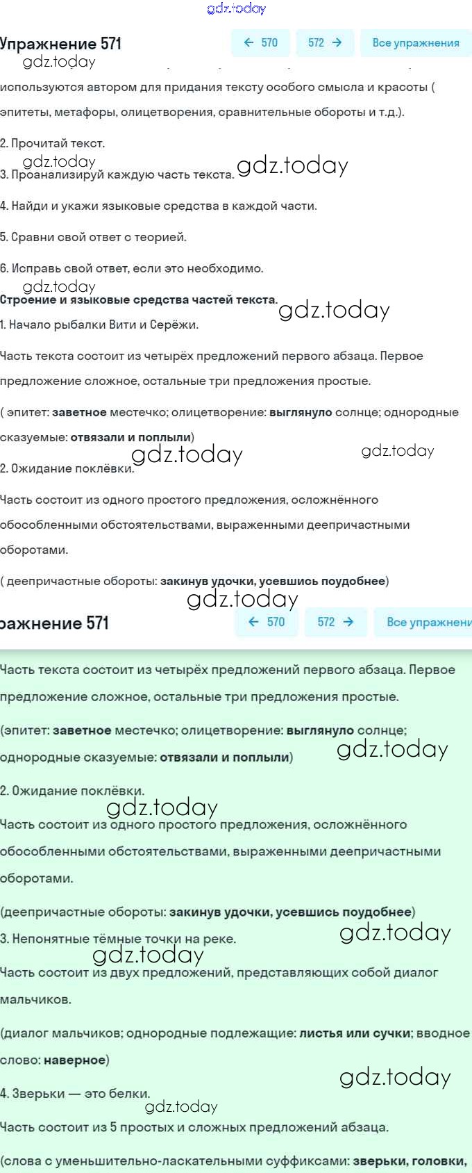 Ответы к Решение. Упражнения 571 Учебнику по Русскому языку для 6 класса Разумовская, Львова Дрофа, Просвещение Вертикаль 2016, 2022