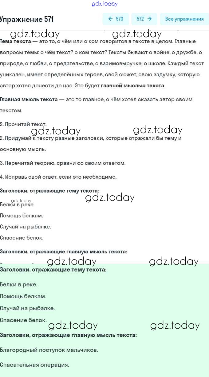 На страницах сайта gdz.today вы найдете учебный и вспомогательный материал, направленный на улучшения знаний школьной программы. ГДЗ - онлайн мир знаний Решение. Упражнения 571 Учебнику по Русскому языку для 6 класса Разумовская, Львова Дрофа, Просвещение Вертикаль 2016, 2022