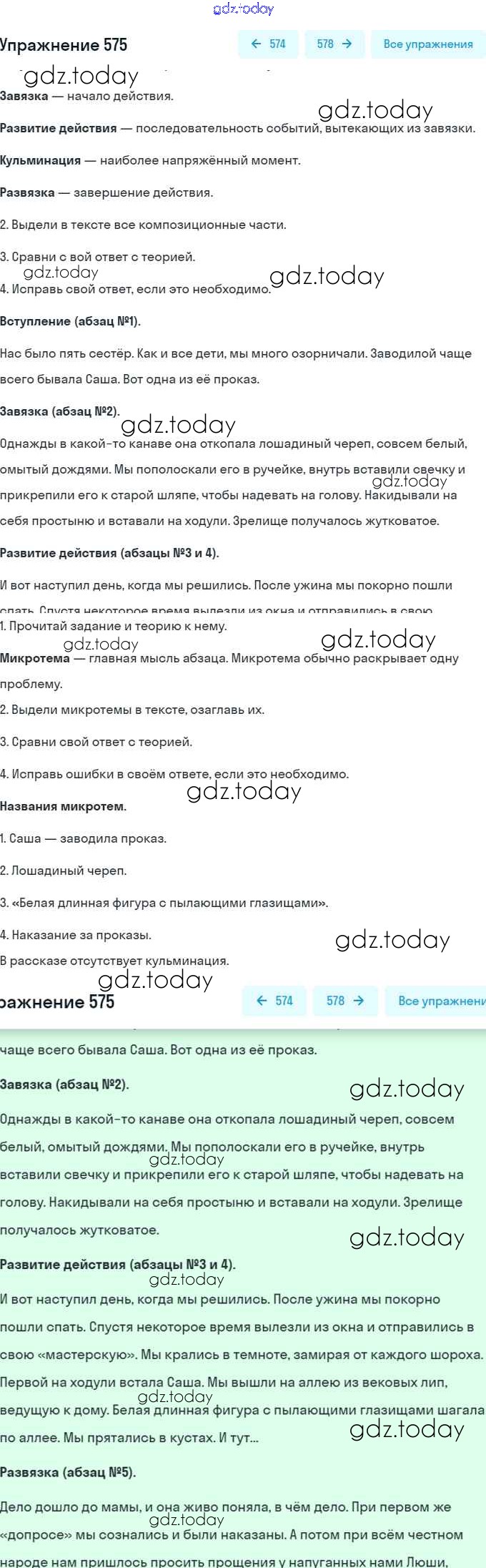 Ответы к Решение. Упражнения 575 Учебнику по Русскому языку для 6 класса Разумовская, Львова Дрофа, Просвещение Вертикаль 2016, 2022