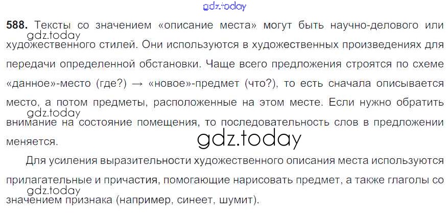 На страницах сайта gdz.today вы найдете учебный и вспомогательный материал, направленный на улучшения знаний школьной программы. ГДЗ - онлайн мир знаний Решение. Упражнения 588 Учебнику по Русскому языку для 6 класса Разумовская, Львова Дрофа, Просвещение Вертикаль 2016, 2022