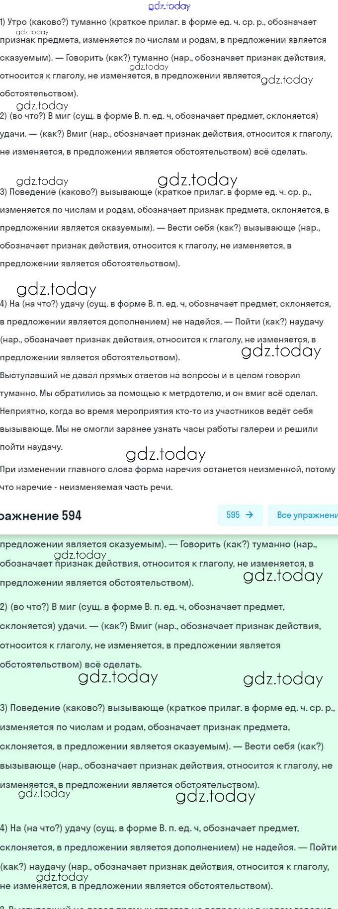 На страницах сайта gdz.today вы найдете учебный и вспомогательный материал, направленный на улучшения знаний школьной программы. ГДЗ - онлайн мир знаний Решение. Упражнения 594 Учебнику по Русскому языку для 6 класса Разумовская, Львова Дрофа, Просвещение Вертикаль 2016, 2022
