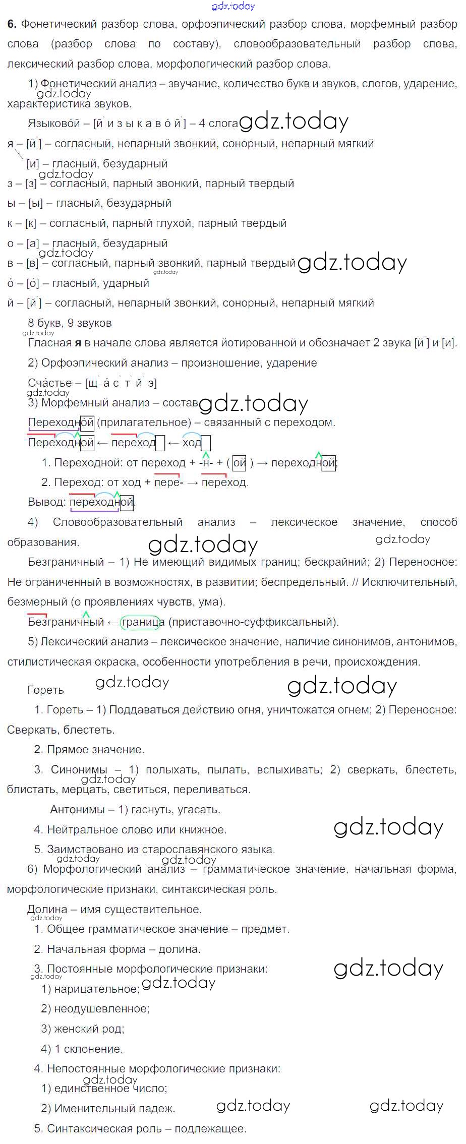 На страницах сайта gdz.today вы найдете учебный и вспомогательный материал, направленный на улучшения знаний школьной программы. ГДЗ - онлайн мир знаний Решение. Упражнения 6 Учебнику по Русскому языку для 6 класса Разумовская, Львова Дрофа, Просвещение Вертикаль 2016, 2022