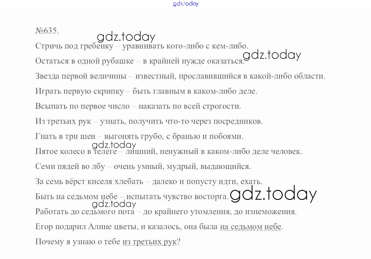 На страницах сайта gdz.today вы найдете учебный и вспомогательный материал, направленный на улучшения знаний школьной программы. ГДЗ - онлайн мир знаний Решение. Упражнения 635 Учебнику по Русскому языку для 6 класса Разумовская, Львова Дрофа, Просвещение Вертикаль 2016, 2022