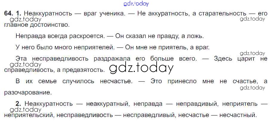 На страницах сайта gdz.today вы найдете учебный и вспомогательный материал, направленный на улучшения знаний школьной программы. ГДЗ - онлайн мир знаний Решение. Упражнения 64 Учебнику по Русскому языку для 6 класса Разумовская, Львова Дрофа, Просвещение Вертикаль 2016, 2022