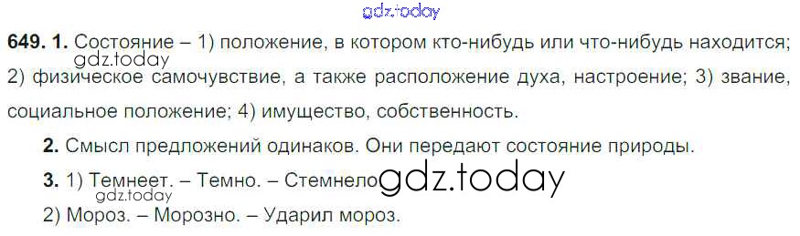 На страницах сайта gdz.today вы найдете учебный и вспомогательный материал, направленный на улучшения знаний школьной программы. ГДЗ - онлайн мир знаний Решение. Упражнения 649 Учебнику по Русскому языку для 6 класса Разумовская, Львова Дрофа, Просвещение Вертикаль 2016, 2022