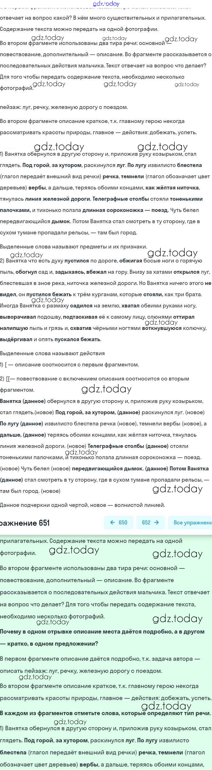 На страницах сайта gdz.today вы найдете учебный и вспомогательный материал, направленный на улучшения знаний школьной программы. ГДЗ - онлайн мир знаний Решение. Упражнения 651 Учебнику по Русскому языку для 6 класса Разумовская, Львова Дрофа, Просвещение Вертикаль 2016, 2022