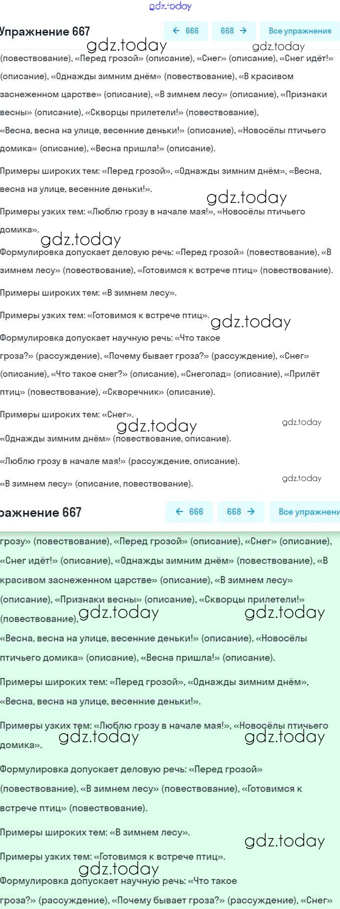 На страницах сайта gdz.today вы найдете учебный и вспомогательный материал, направленный на улучшения знаний школьной программы. ГДЗ - онлайн мир знаний Решение. Упражнения 667 Учебнику по Русскому языку для 6 класса Разумовская, Львова Дрофа, Просвещение Вертикаль 2016, 2022