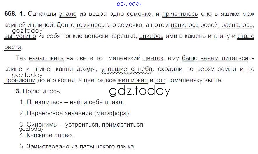 На страницах сайта gdz.today вы найдете учебный и вспомогательный материал, направленный на улучшения знаний школьной программы. ГДЗ - онлайн мир знаний Решение. Упражнения 668 Учебнику по Русскому языку для 6 класса Разумовская, Львова Дрофа, Просвещение Вертикаль 2016, 2022