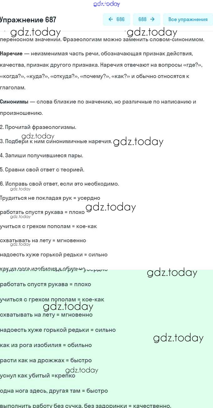 На страницах сайта gdz.today вы найдете учебный и вспомогательный материал, направленный на улучшения знаний школьной программы. ГДЗ - онлайн мир знаний Решение. Упражнения 687 Учебнику по Русскому языку для 6 класса Разумовская, Львова Дрофа, Просвещение Вертикаль 2016, 2022