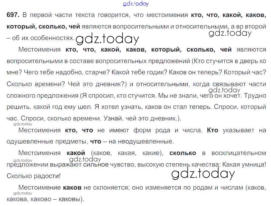 На страницах сайта gdz.today вы найдете учебный и вспомогательный материал, направленный на улучшения знаний школьной программы. ГДЗ - онлайн мир знаний Решение. Упражнения 697 Учебнику по Русскому языку для 6 класса Разумовская, Львова Дрофа, Просвещение Вертикаль 2016, 2022