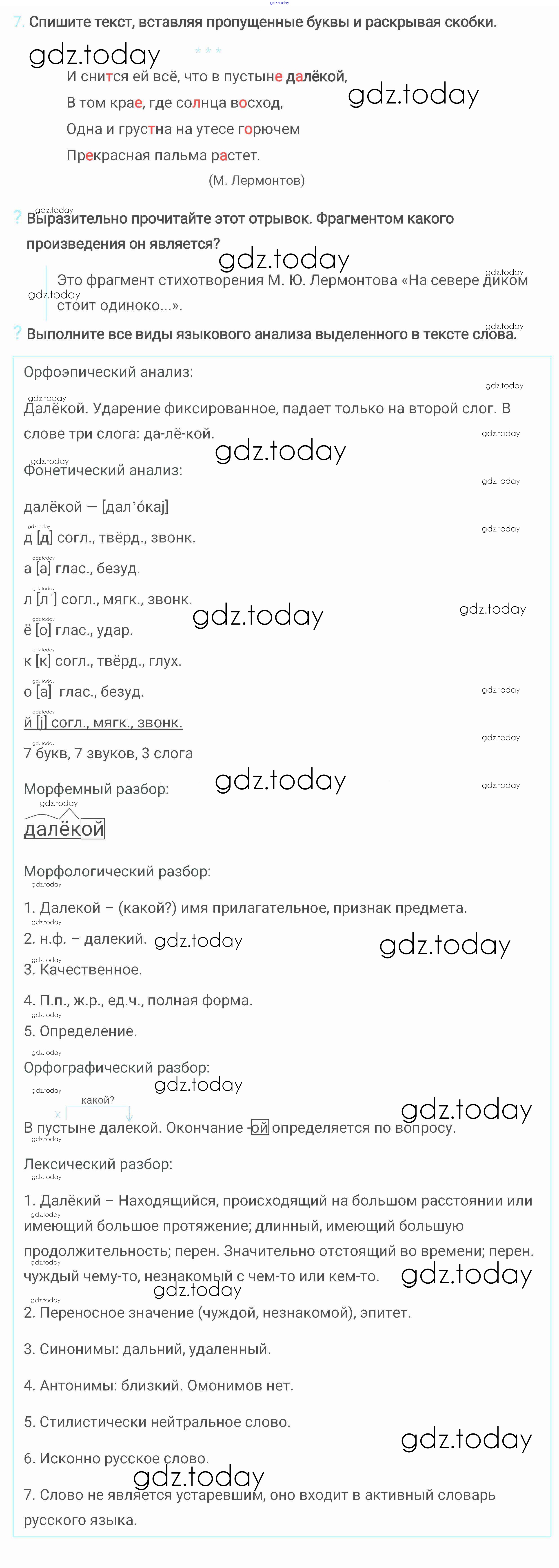 На страницах сайта gdz.today вы найдете учебный и вспомогательный материал, направленный на улучшения знаний школьной программы. ГДЗ - онлайн мир знаний Решение. Упражнения 7 Учебнику по Русскому языку для 6 класса Разумовская, Львова Дрофа, Просвещение Вертикаль 2016, 2022