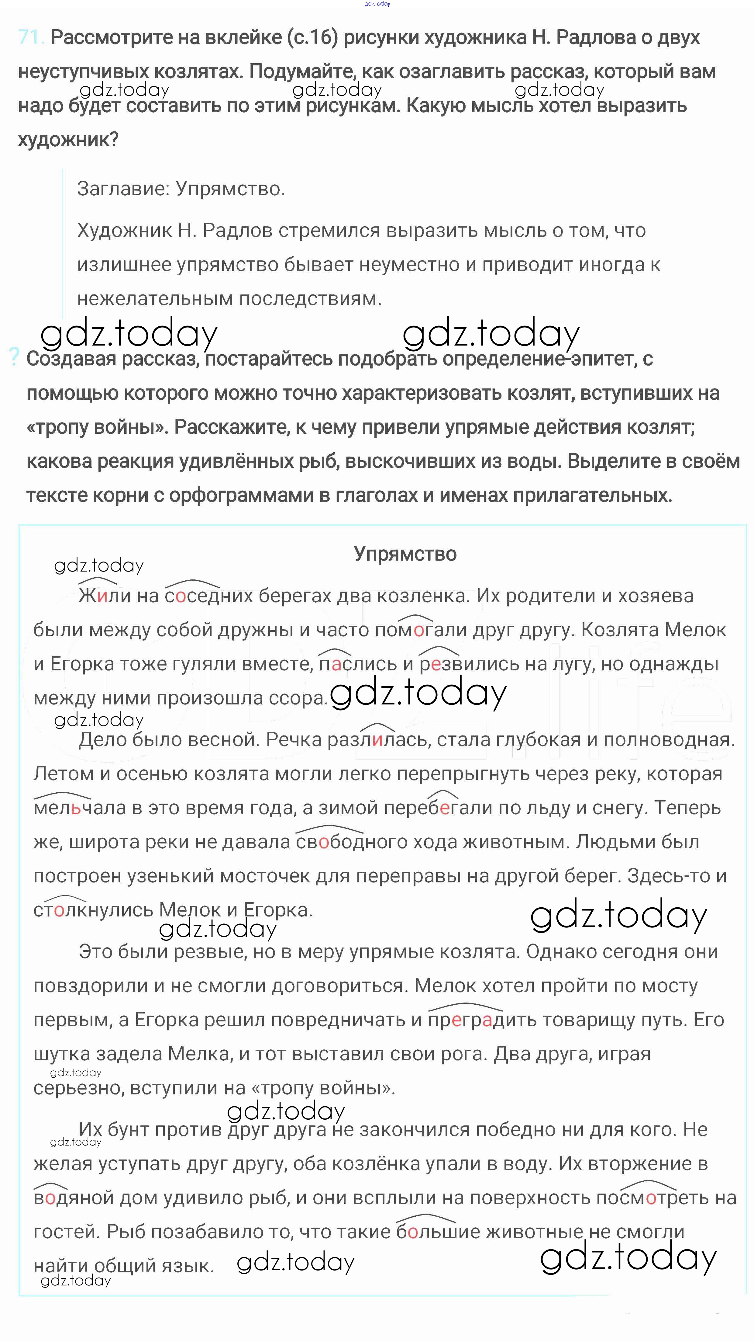 На страницах сайта gdz.today вы найдете учебный и вспомогательный материал, направленный на улучшения знаний школьной программы. ГДЗ - онлайн мир знаний Решение. Упражнения 71 Учебнику по Русскому языку для 6 класса Разумовская, Львова Дрофа, Просвещение Вертикаль 2016, 2022