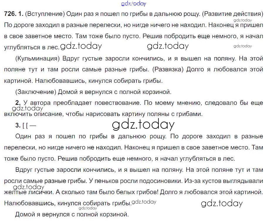 Ответы к Решение. Упражнения 726 Учебнику по Русскому языку для 6 класса Разумовская, Львова Дрофа, Просвещение Вертикаль 2016, 2022