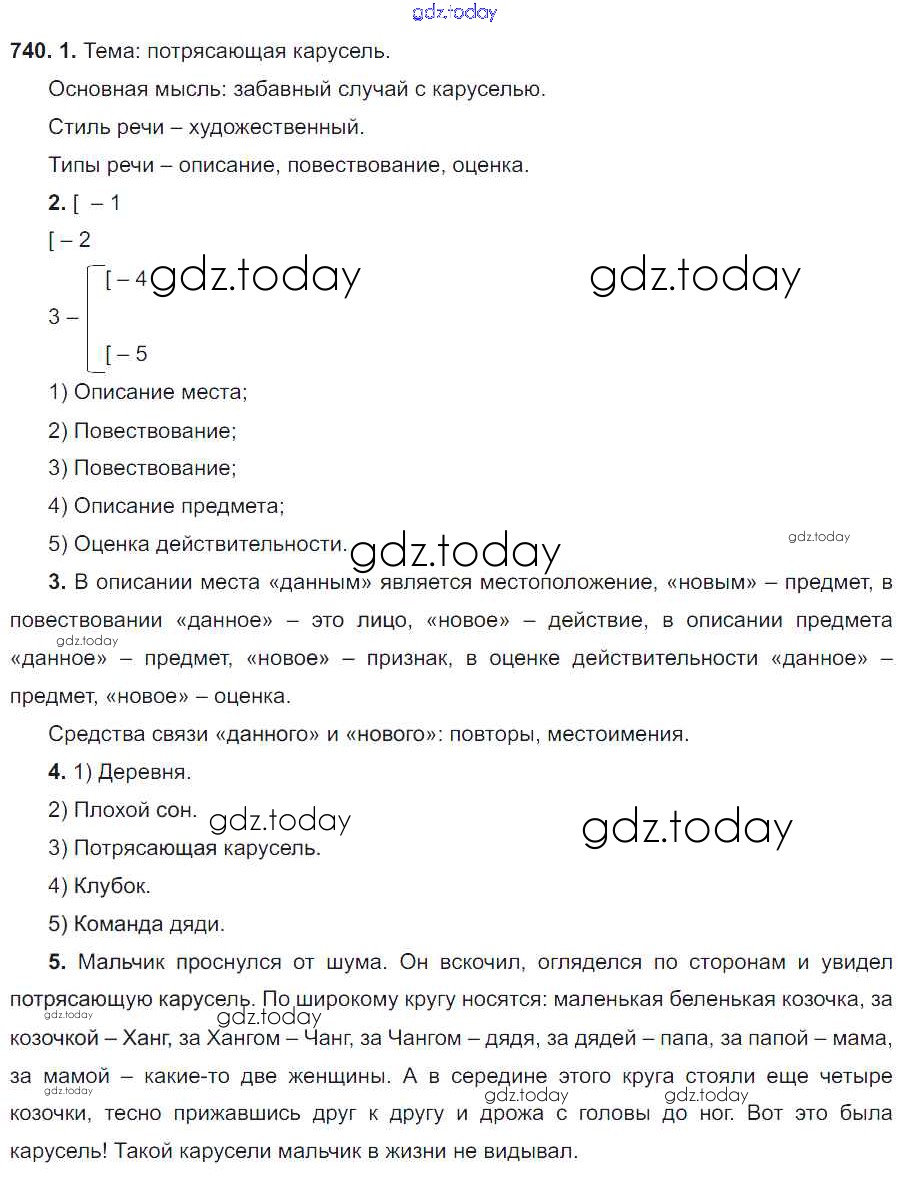 Ответы к Решение. Упражнения 740 Учебнику по Русскому языку для 6 класса Разумовская, Львова Дрофа, Просвещение Вертикаль 2016, 2022