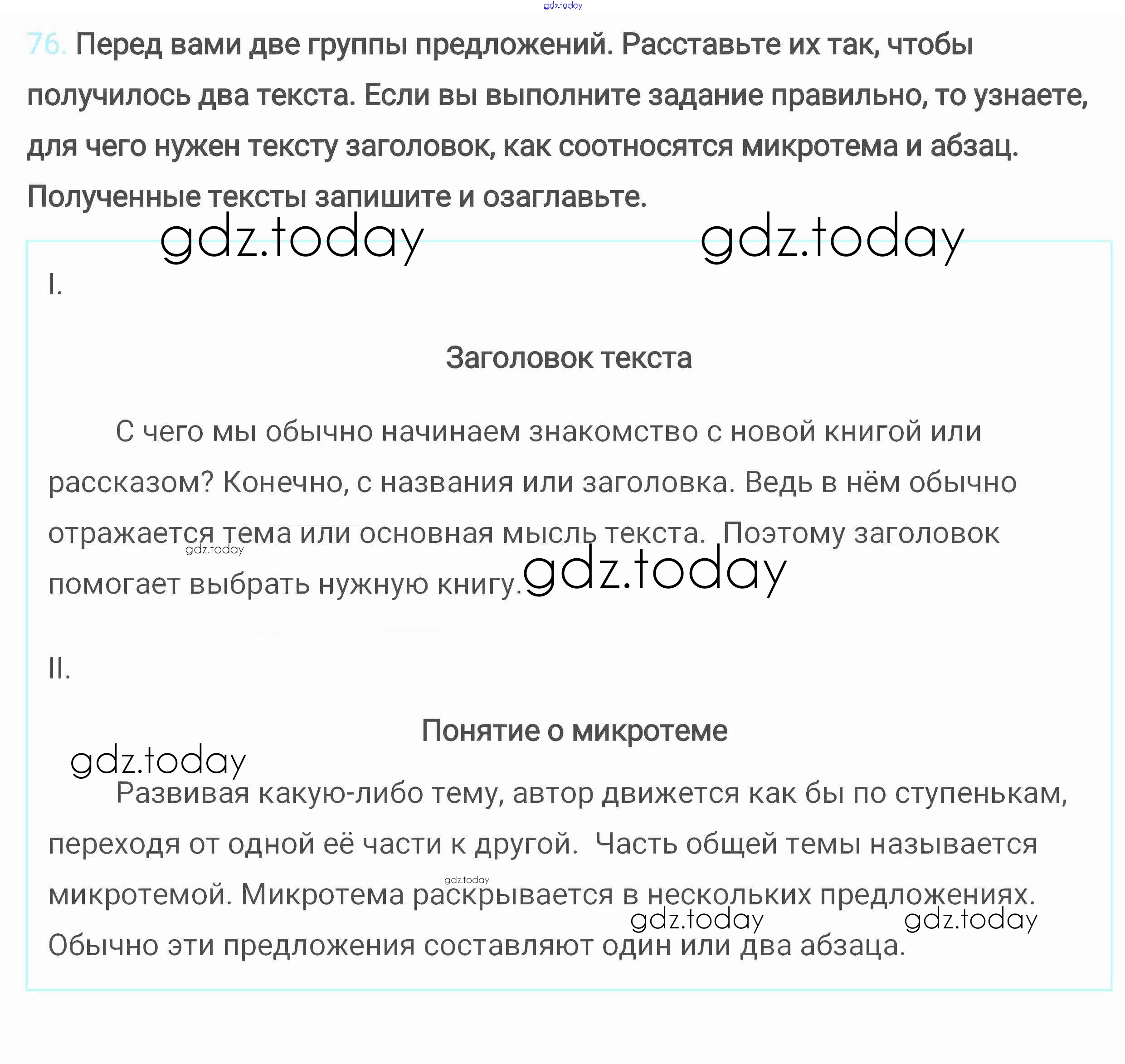 На страницах сайта gdz.today вы найдете учебный и вспомогательный материал, направленный на улучшения знаний школьной программы. ГДЗ - онлайн мир знаний Решение. Упражнения 76 Учебнику по Русскому языку для 6 класса Разумовская, Львова Дрофа, Просвещение Вертикаль 2016, 2022