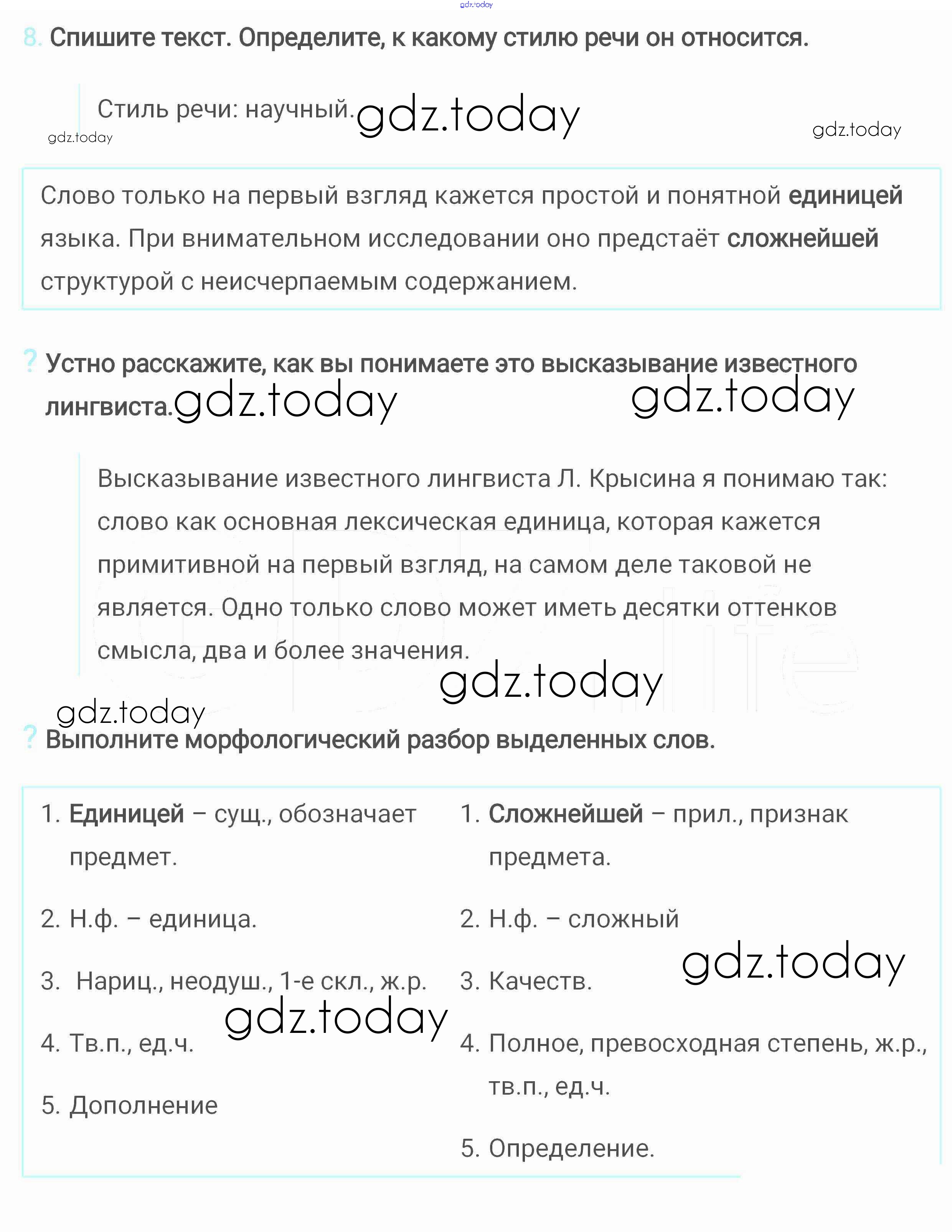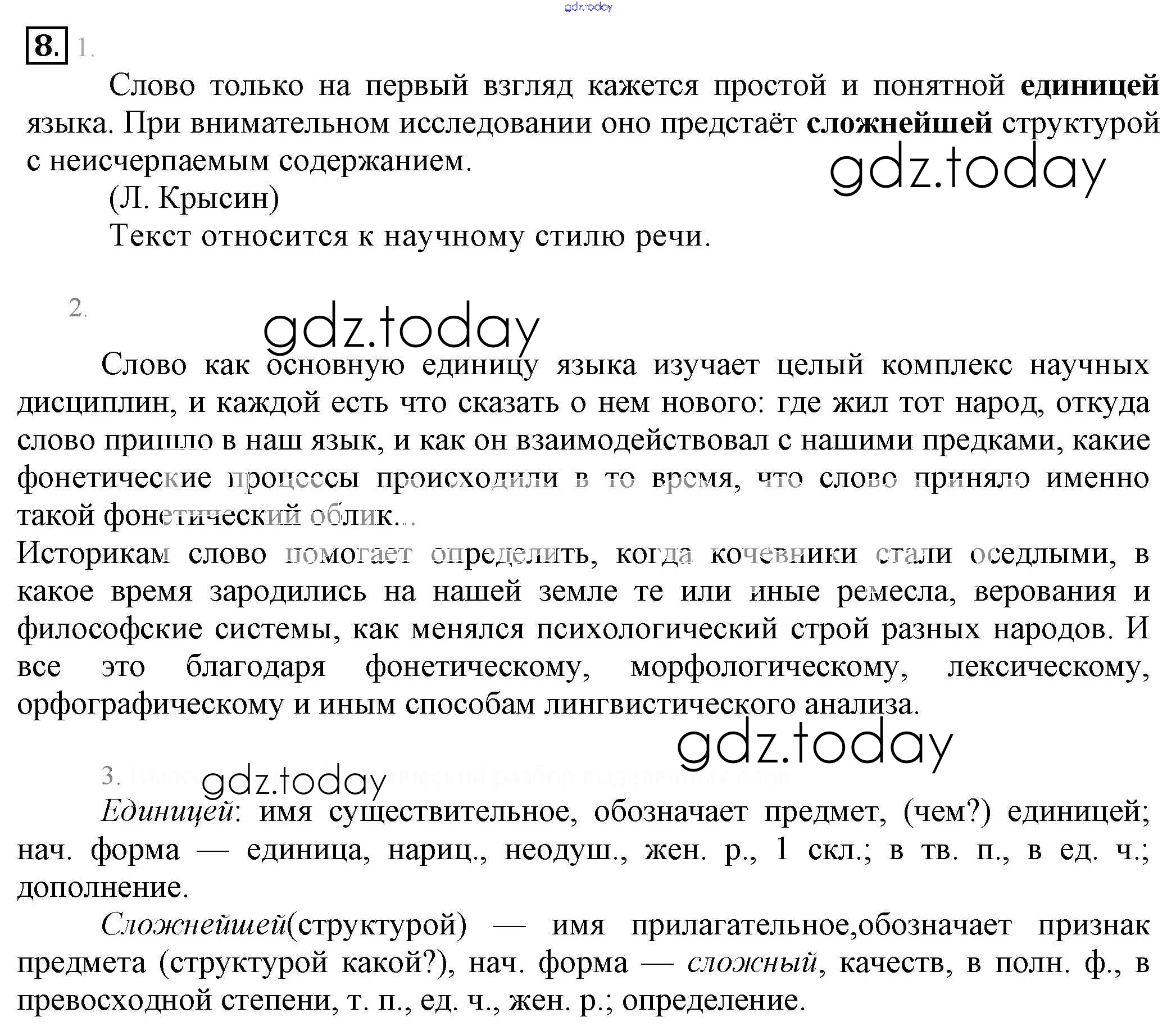 На страницах сайта gdz.today вы найдете учебный и вспомогательный материал, направленный на улучшения знаний школьной программы. ГДЗ - онлайн мир знаний Решение. Упражнения 8 Учебнику по Русскому языку для 6 класса Разумовская, Львова Дрофа, Просвещение Вертикаль 2016, 2022