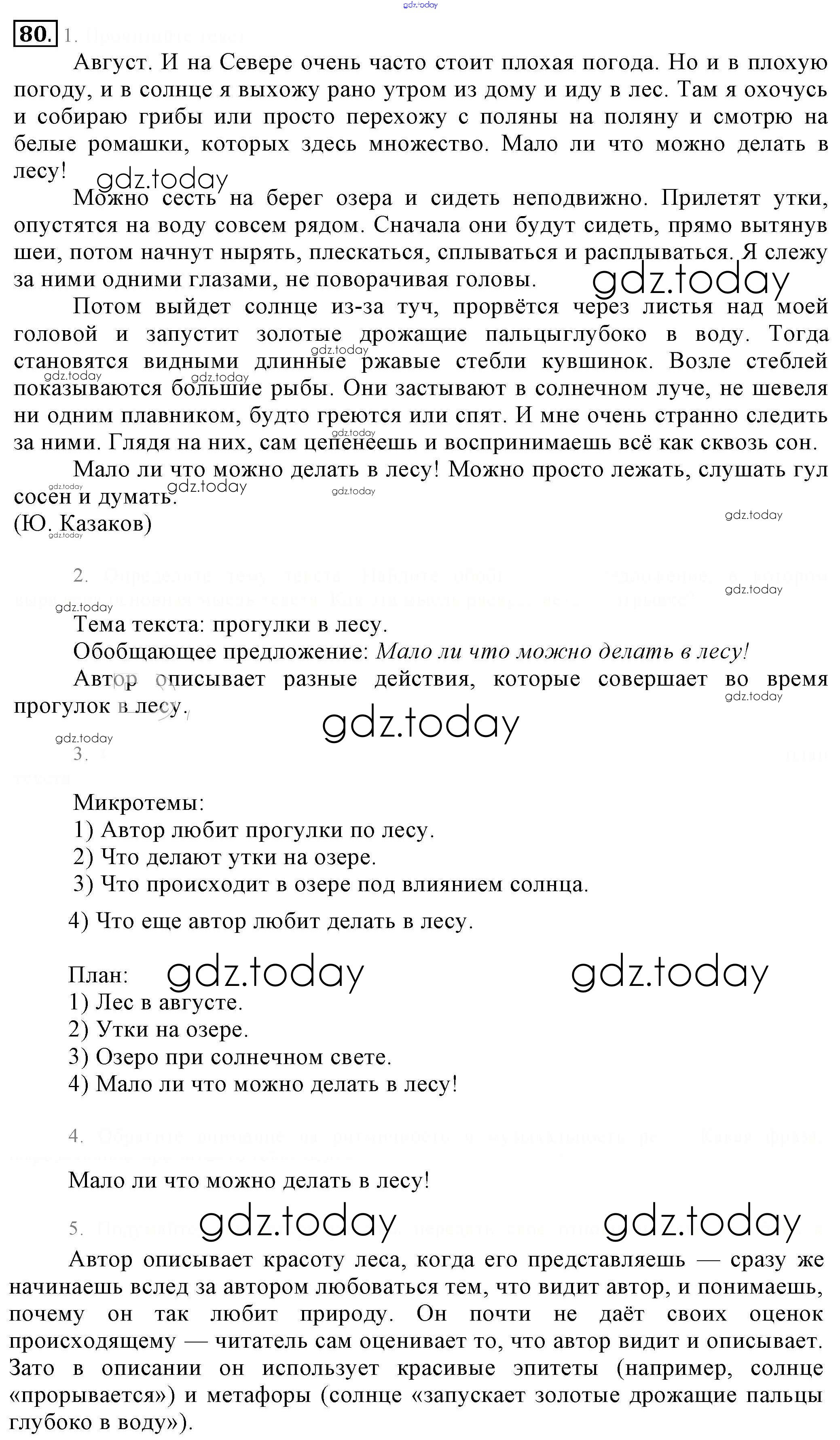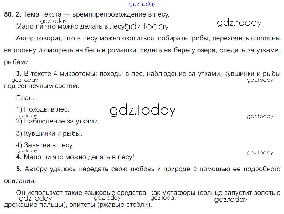 На страницах сайта gdz.today вы найдете учебный и вспомогательный материал, направленный на улучшения знаний школьной программы. ГДЗ - онлайн мир знаний Решение. Упражнения 80 Учебнику по Русскому языку для 6 класса Разумовская, Львова Дрофа, Просвещение Вертикаль 2016, 2022