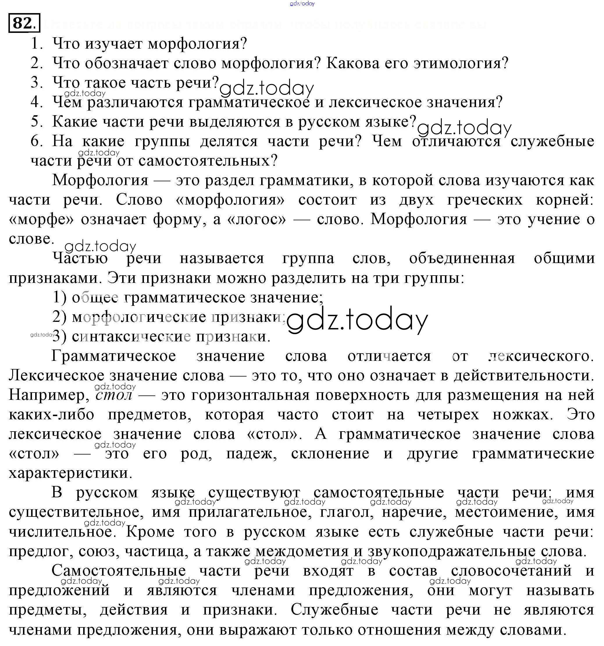 На страницах сайта gdz.today вы найдете учебный и вспомогательный материал, направленный на улучшения знаний школьной программы. ГДЗ - онлайн мир знаний Решение. Упражнения 82 Учебнику по Русскому языку для 6 класса Разумовская, Львова Дрофа, Просвещение Вертикаль 2016, 2022