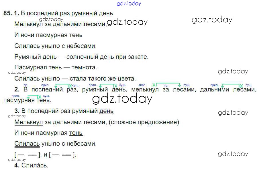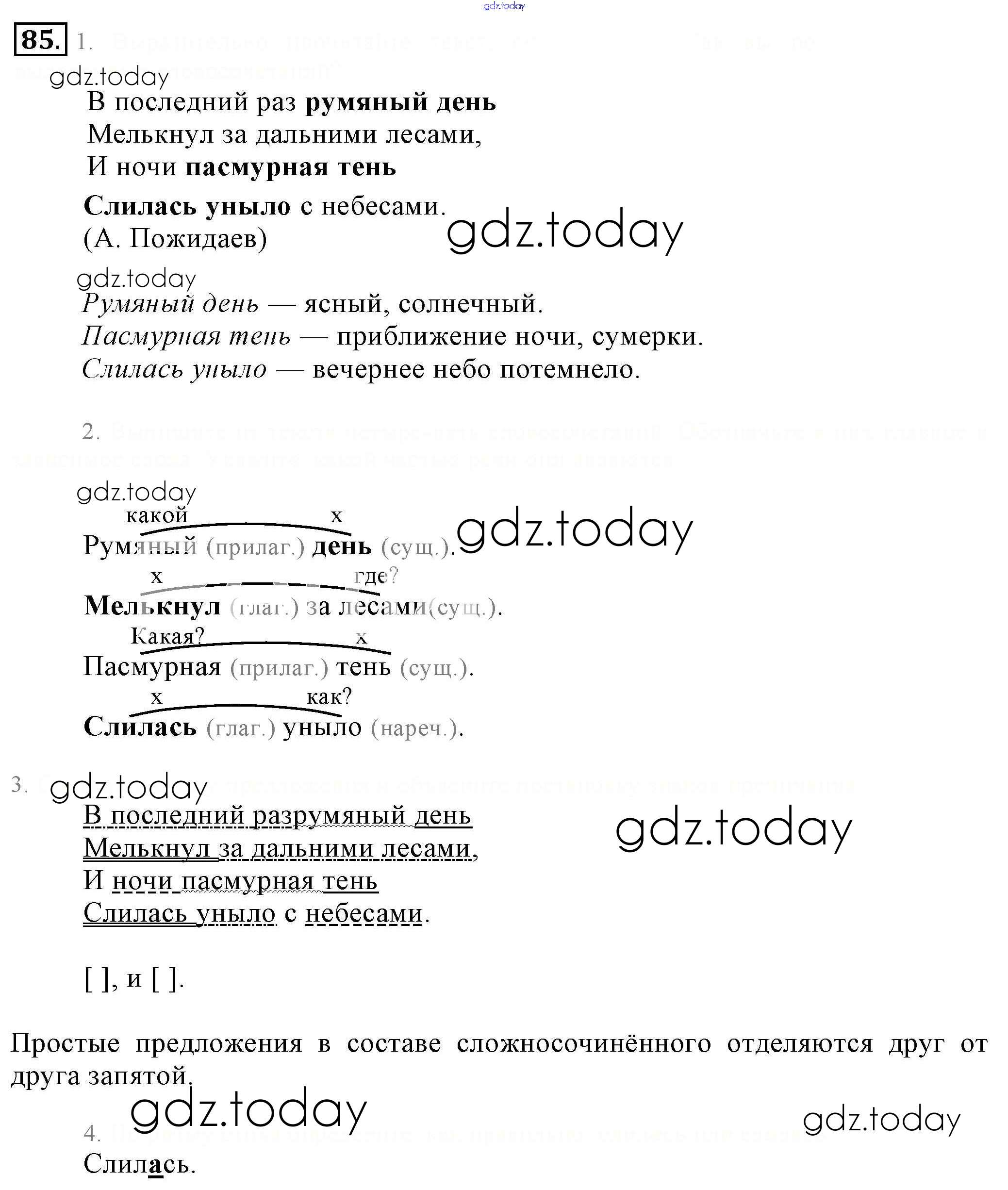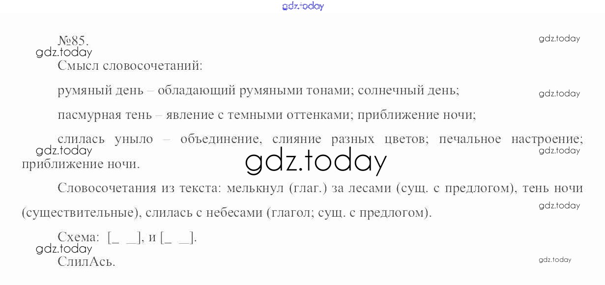 На страницах сайта gdz.today вы найдете учебный и вспомогательный материал, направленный на улучшения знаний школьной программы. ГДЗ - онлайн мир знаний Решение. Упражнения 85 Учебнику по Русскому языку для 6 класса Разумовская, Львова Дрофа, Просвещение Вертикаль 2016, 2022