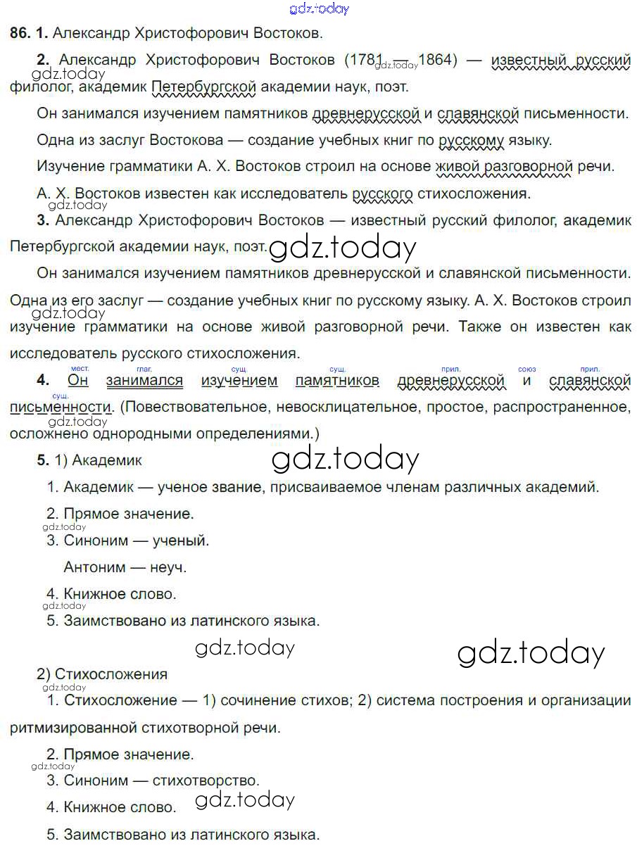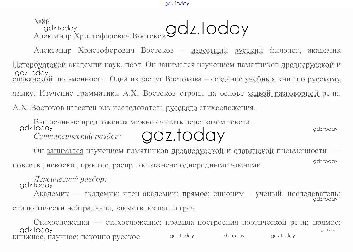 На страницах сайта gdz.today вы найдете учебный и вспомогательный материал, направленный на улучшения знаний школьной программы. ГДЗ - онлайн мир знаний Решение. Упражнения 86 Учебнику по Русскому языку для 6 класса Разумовская, Львова Дрофа, Просвещение Вертикаль 2016, 2022