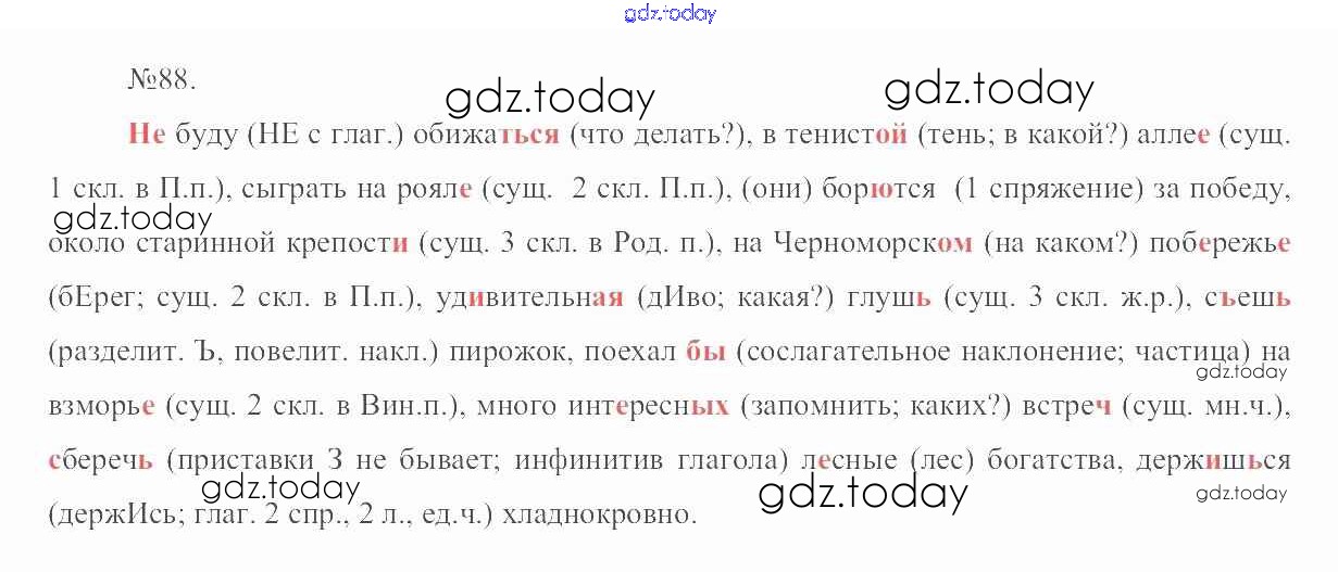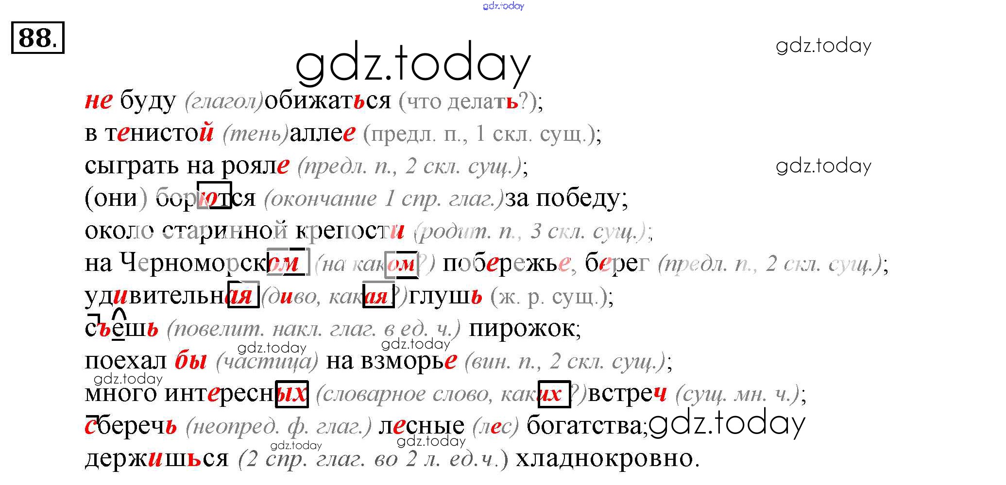 На страницах сайта gdz.today вы найдете учебный и вспомогательный материал, направленный на улучшения знаний школьной программы. ГДЗ - онлайн мир знаний Решение. Упражнения 88 Учебнику по Русскому языку для 6 класса Разумовская, Львова Дрофа, Просвещение Вертикаль 2016, 2022