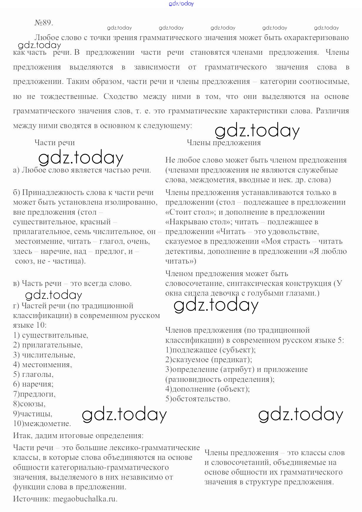 На страницах сайта gdz.today вы найдете учебный и вспомогательный материал, направленный на улучшения знаний школьной программы. ГДЗ - онлайн мир знаний Решение. Упражнения 89 Учебнику по Русскому языку для 6 класса Разумовская, Львова Дрофа, Просвещение Вертикаль 2016, 2022