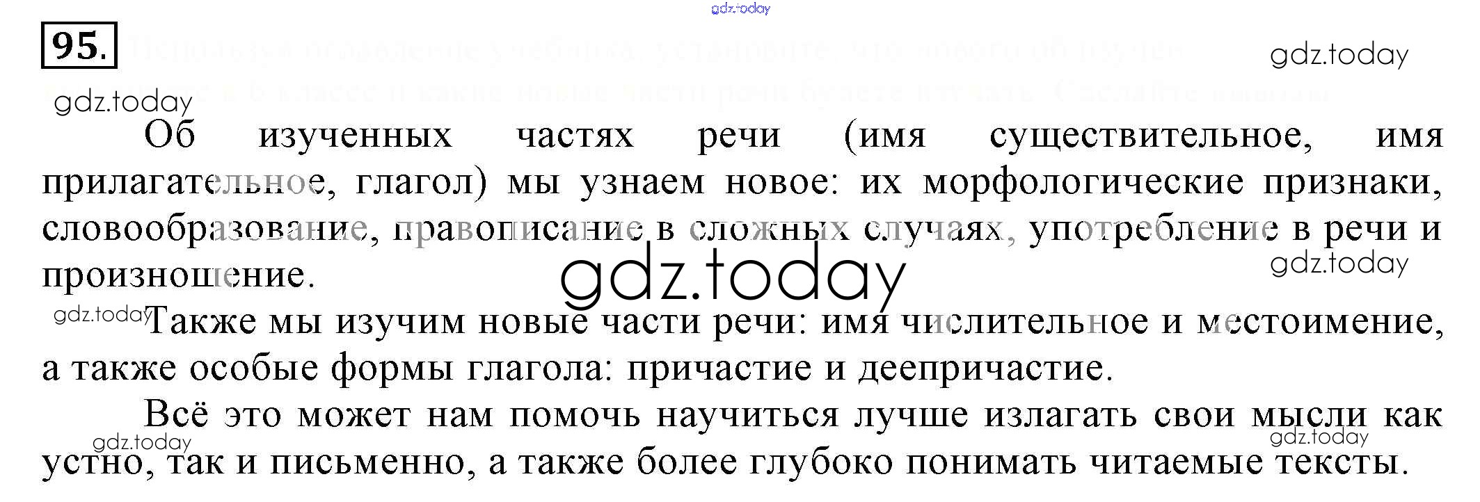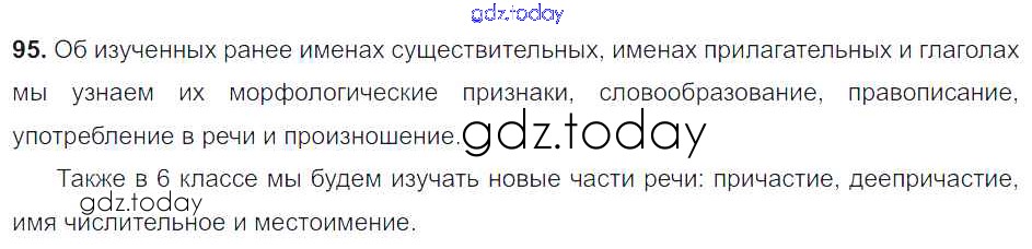На страницах сайта gdz.today вы найдете учебный и вспомогательный материал, направленный на улучшения знаний школьной программы. ГДЗ - онлайн мир знаний Решение. Упражнения 95 Учебнику по Русскому языку для 6 класса Разумовская, Львова Дрофа, Просвещение Вертикаль 2016, 2022