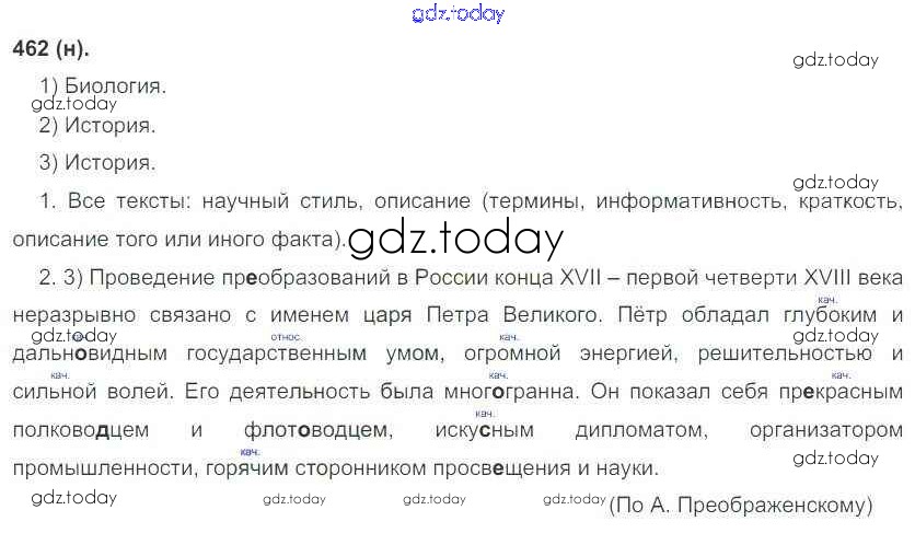 На страницах сайта gdz.today вы найдете учебный и вспомогательный материал, направленный на улучшения знаний школьной программы. ГДЗ - онлайн мир знаний Решение к новому изданию 462 Учебнику по Русскому языку для 6 класса Рыбченкова, Александрова Просвещение 2016