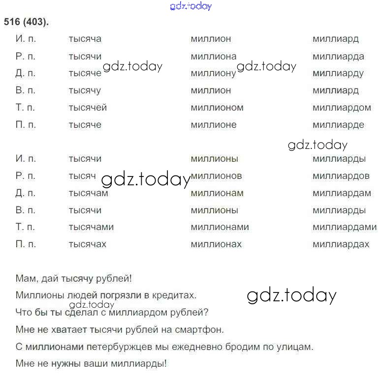 На страницах сайта gdz.today вы найдете учебный и вспомогательный материал, направленный на улучшения знаний школьной программы. ГДЗ - онлайн мир знаний Решение к новому изданию 516 Учебнику по Русскому языку для 6 класса Рыбченкова, Александрова Просвещение 2016