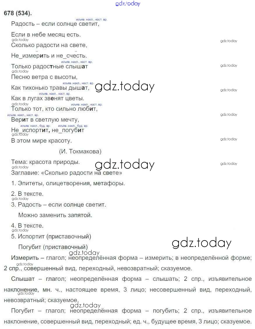 На страницах сайта gdz.today вы найдете учебный и вспомогательный материал, направленный на улучшения знаний школьной программы. ГДЗ - онлайн мир знаний Решение к новому изданию 678 Учебнику по Русскому языку для 6 класса Рыбченкова, Александрова Просвещение 2016