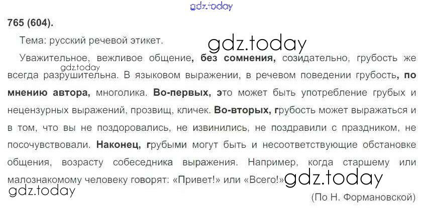 На страницах сайта gdz.today вы найдете учебный и вспомогательный материал, направленный на улучшения знаний школьной программы. ГДЗ - онлайн мир знаний Решение к новому изданию 765 Учебнику по Русскому языку для 6 класса Рыбченкова, Александрова Просвещение 2016