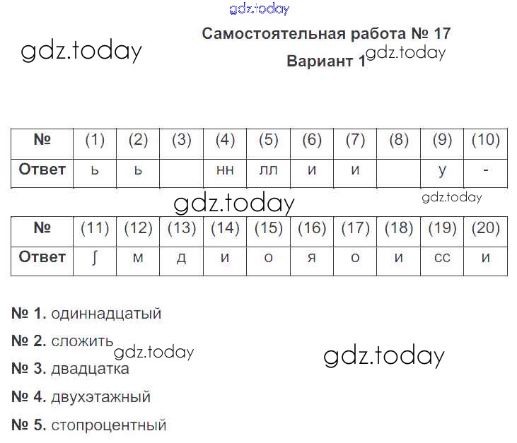 На страницах сайта gdz.today вы найдете учебный и вспомогательный материал, направленный на улучшения знаний школьной программы. ГДЗ - онлайн мир знаний СР-17 Решение к самостоятельным работам вариант-1 Тематическому контролю по Русскому языку для 6 класса Александров, Александрова Национальное образование 2017