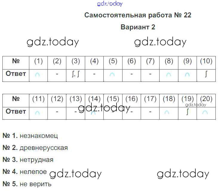 На страницах сайта gdz.today вы найдете учебный и вспомогательный материал, направленный на улучшения знаний школьной программы. ГДЗ - онлайн мир знаний СР-22 Решение к самостоятельным работам вариант-2 Тематическому контролю по Русскому языку для 6 класса Александров, Александрова Национальное образование 2017