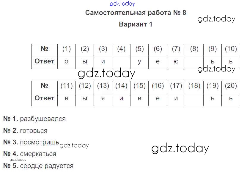 На страницах сайта gdz.today вы найдете учебный и вспомогательный материал, направленный на улучшения знаний школьной программы. ГДЗ - онлайн мир знаний СР-8 Решение к самостоятельным работам вариант-1 Тематическому контролю по Русскому языку для 6 класса Александров, Александрова Национальное образование 2017