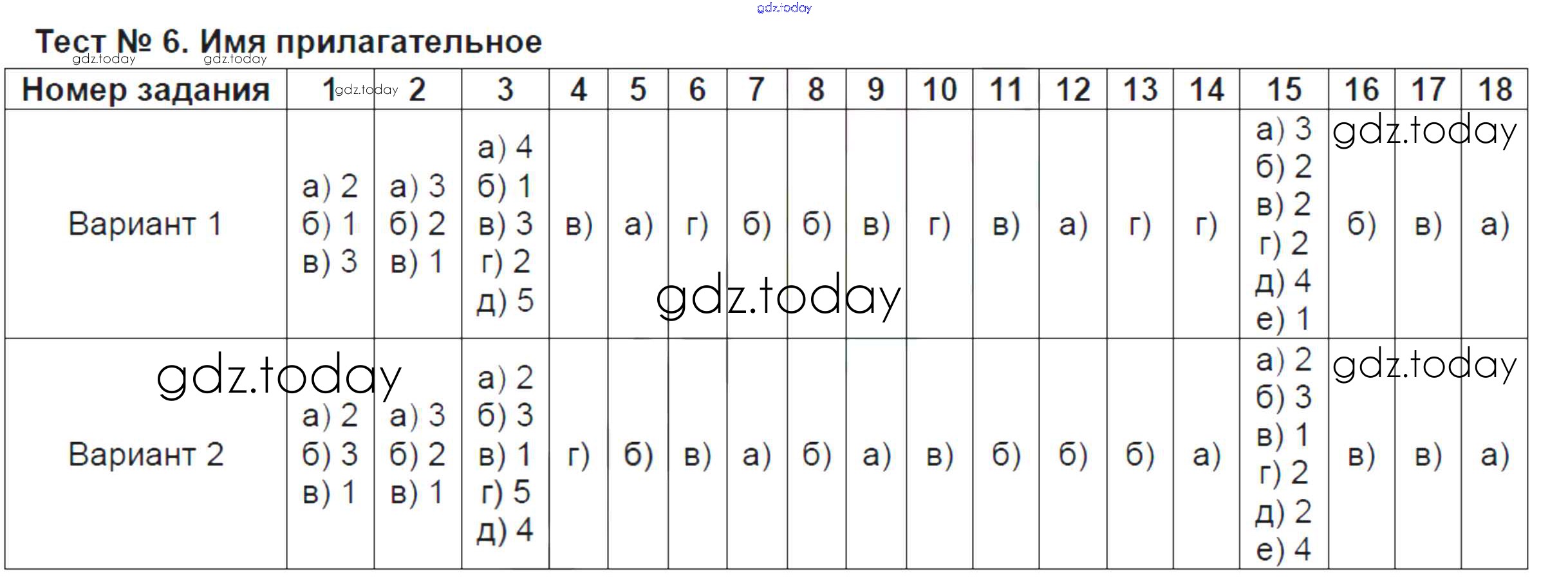 На страницах сайта gdz.today вы найдете учебный и вспомогательный материал, направленный на улучшения знаний школьной программы. ГДЗ - онлайн мир знаний Решение к тестам Тест №6. Имя прилагательное Тематическим тестам по Русскому языку для 6 класса Каськова Просвещение УМК 2016