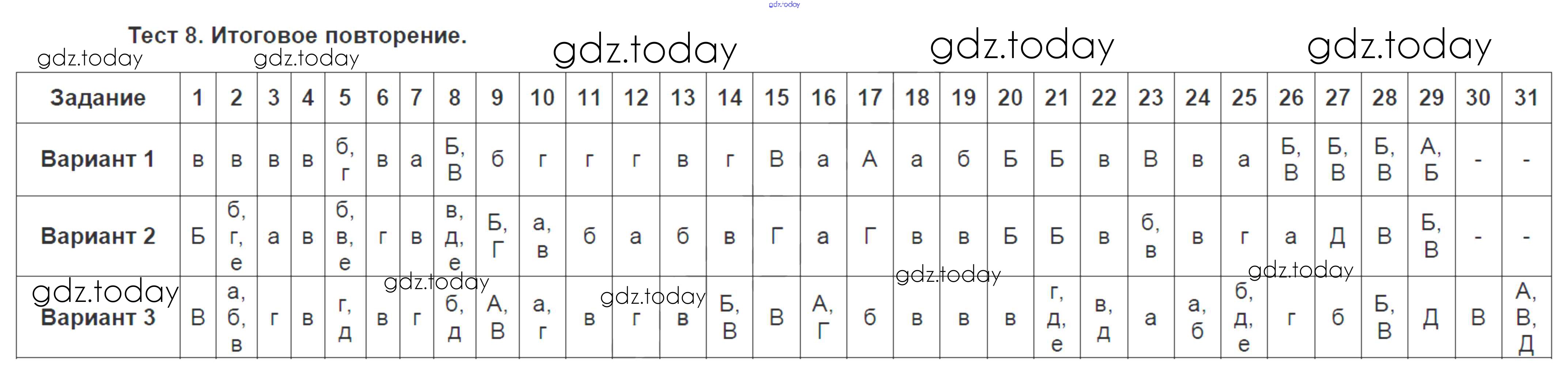 Ответы к Решение к тестам Тест №8. Итоговое повторение Тестовым заданиям по Русскому языку для 6 класса Малюшкин Сфера 2019