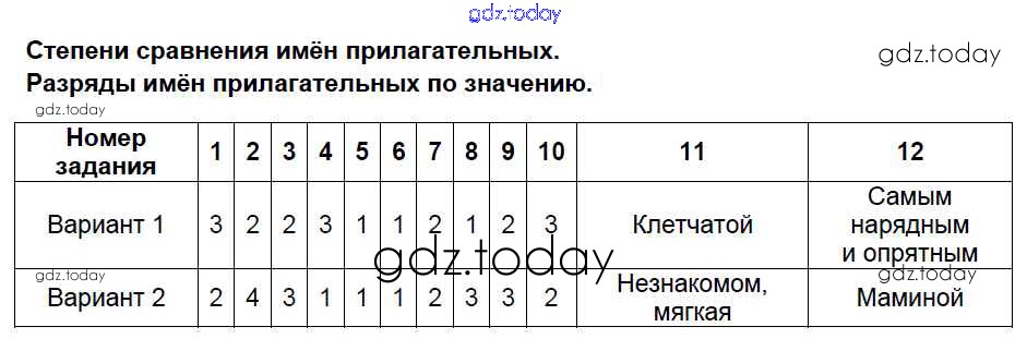 На страницах сайта gdz.today вы найдете учебный и вспомогательный материал, направленный на улучшения знаний школьной программы. ГДЗ - онлайн мир знаний Часть 2. Решение к тестам Тест-2. Степени сравнения имён прилагательных Тестам по Русскому языку для 6 класса Селезнева Экзамен УМК 2014